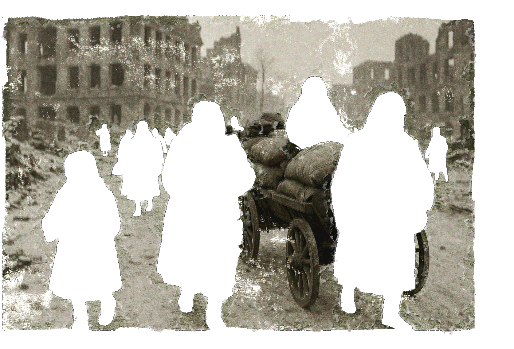 Середина октября 1941 года, осажденный Ленинград. Памятники и купола соборов затянуты сеткой, здания разрушены, трамваи брошены. С неба безостановочно сыплются бомбы, превращая дома в руины и сея смерть. Выживших без крова душит голод.